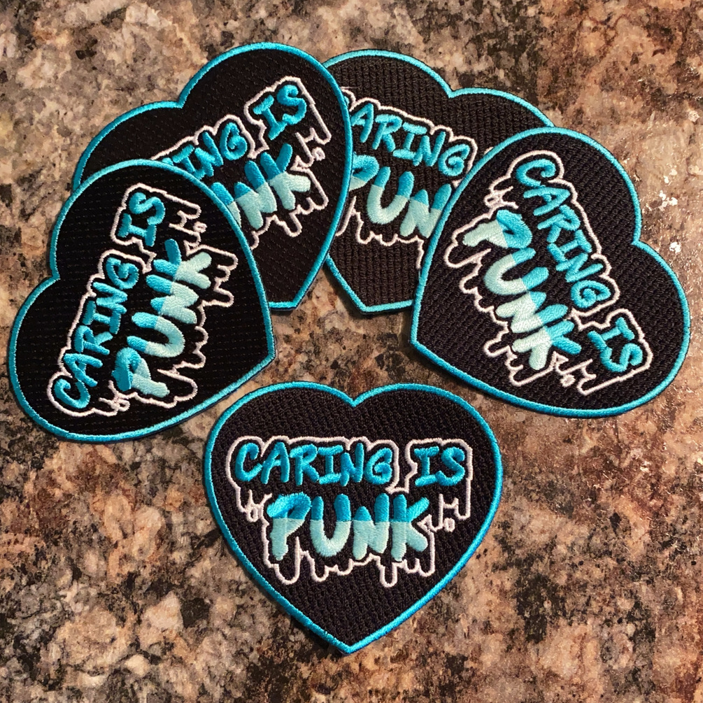 These embroidered patches are 2.5 inches tall and 2.5 inches wide! If you have a Caring is Punk patch from the original series, these are a little bit smaller.